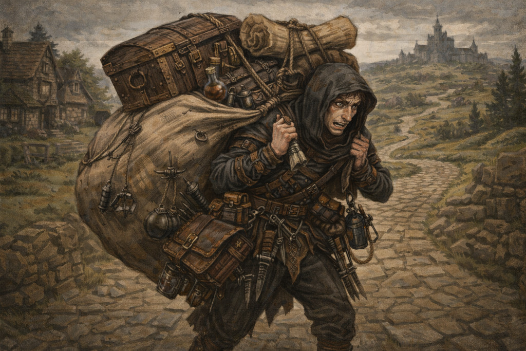 Überlade dich nicht und achte auf Sicherheit - du brauchst nicht für jede denkbare Situation einen passenden Gegenstand. Zu viel Ausrüstung kann auch bremsen und Chaos verursachen. Ziel ist nicht die maximale Gadget-Dichte, sondern die gezielte Auswahl von geeigneten Elementen mit spielerischer Funktion, die zu deinem Charakter passen. Polstere zerbrechliche Dinge und sichere scharfkantige Gegenstände gut ab. Trage niemals ein scharfes Messer am Körper.